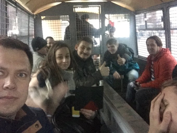Москва, 26 марта, групповое селфи из автозака во время акции "Он нам не Димон!":